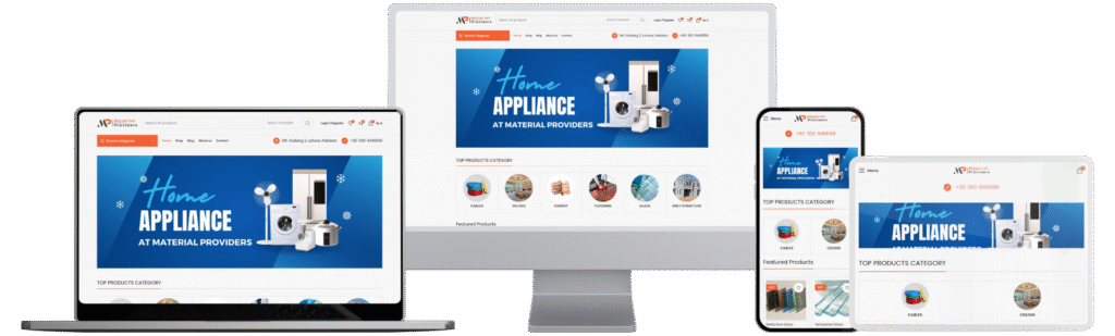 MaterialProviders.com is a fully functional and responsive website built for a company that supplies construction materials across Pakistan. The client required a professional online presence to showcase their products, services, and enable customer inquiries.